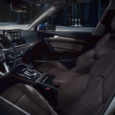 La combinación de tamaño, prestaciones y funcionalidad distinguen a Audi Q5 Sportback. La posición elevada de los asientos garantiza una buena visión de conjunto en el tráfico. Sus líneas orientadas horizontalmente acentúan la impresión de amplitud y confort. Una forma decorativa tridimensional recorre todo el ancho del panel de instrumentos.