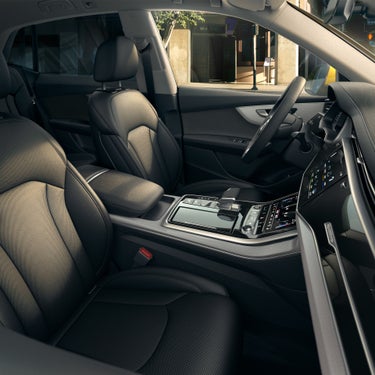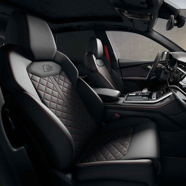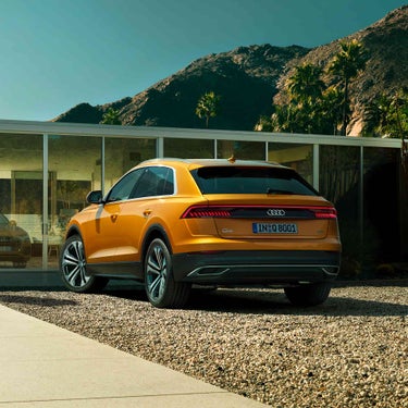 La parrilla del radiador de Audi Q8 se combina con el alerón delantero y las grandes entradas de aire para subrayar su aspecto seguro.