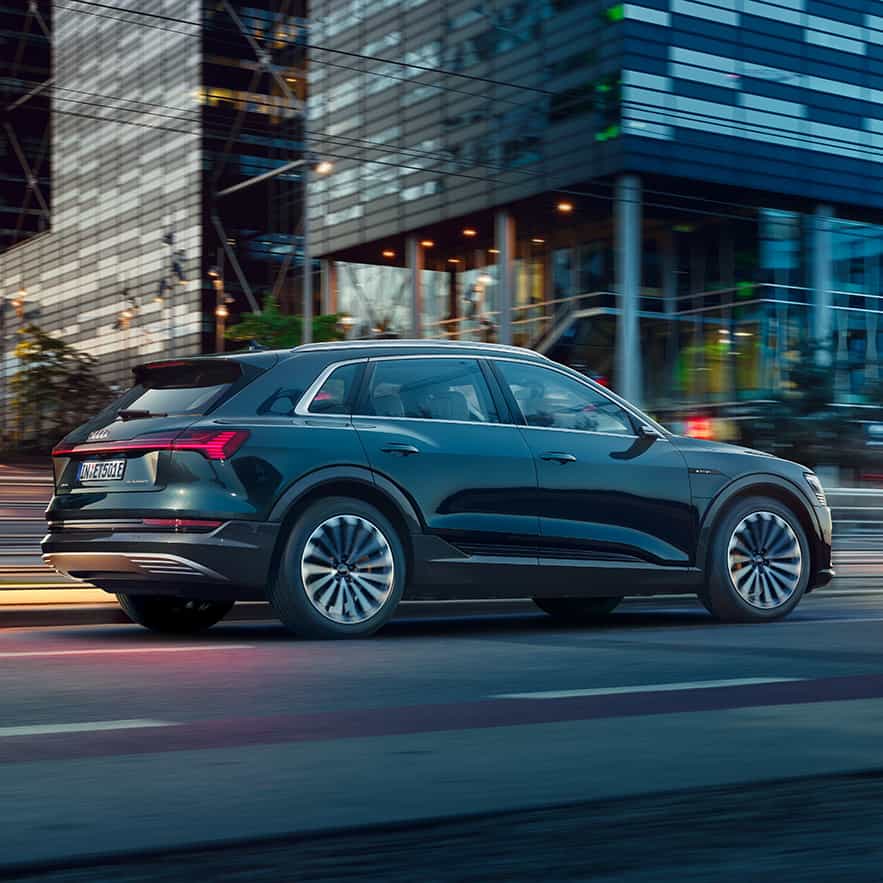 Una impresionante elegancia deportiva emana de Audi e-tron Sportback. Los elementos de diseño atlético en los umbrales revelan la batería de montaje bajo y crean un centro de gravedad visual.